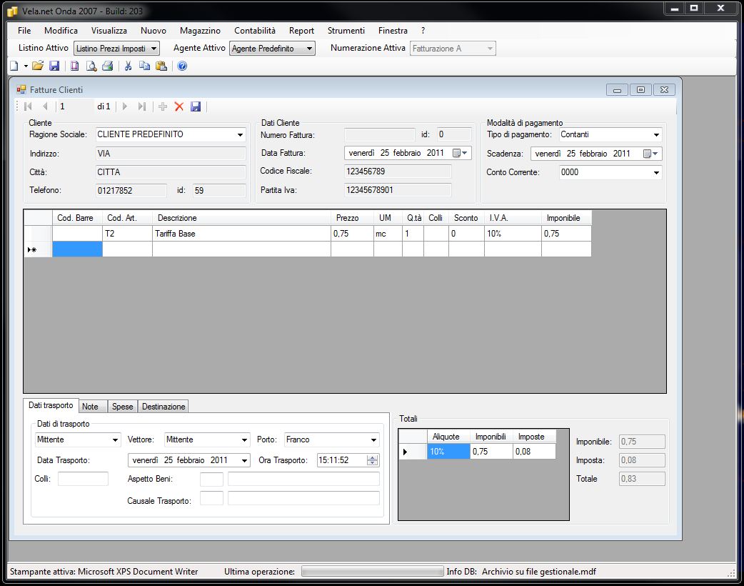 - listini di vendita personalizzati per ogni cliente stampa dei documenti fiscali