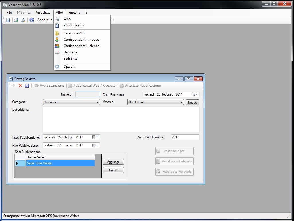 Il programma, tramite semplici maschere consente l’inserimento degli atti da pubblicare